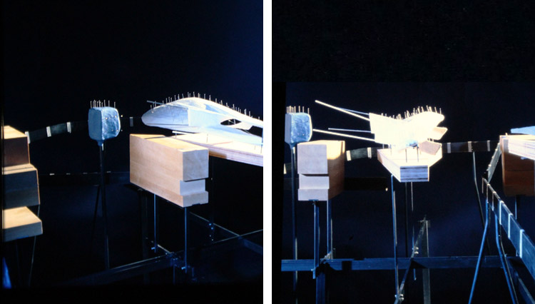 Das theoretische Projekt für ein Hotel an der West Side Highway in New York verwendet einen Fotoapparat, den ich selbst umgebaut habe, um Fotos nach der Fotofinish-Methode zu schießen. In einem 8 Meter großen Model wird der Fotoapparat an Schienen entlang des West-Side-Highways „gefahren“, währenddessen Langzeit-Fotos aufgenommen werden. Der Fotoapparat übernimmt damit den Blickpunkt eines Autos, von dem aus das Hotel immer wieder neu wahrgenommen wird - als Auto, das sich dem Gebäude nähert und dann vorbeifährt, um vom Highway abzubiegen und am Hotel anzukommen. Durch die Auseinandersetzung von Fotografie und Modelbau wurde die Architektur des Hotels entwickelt.